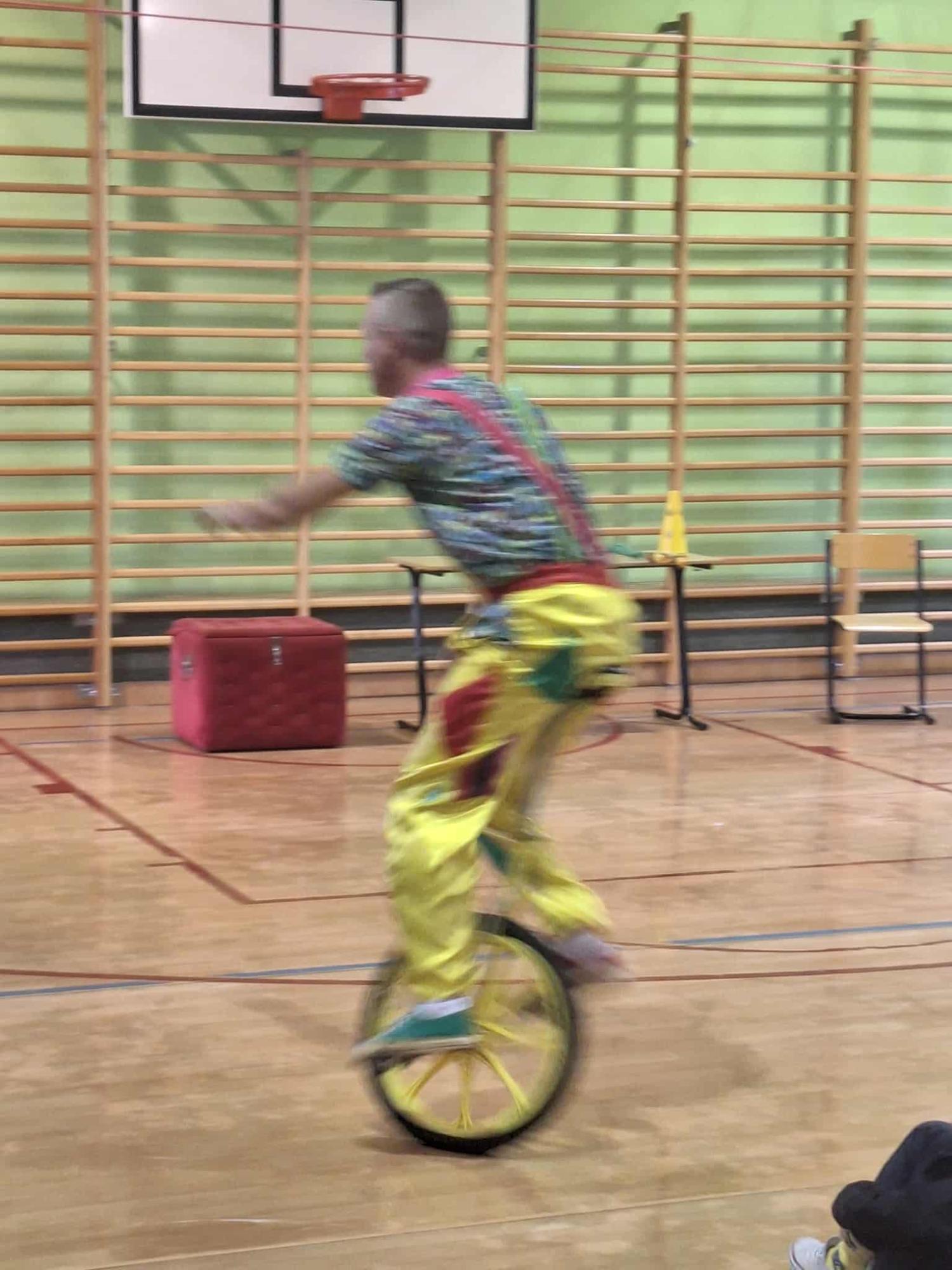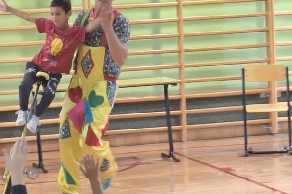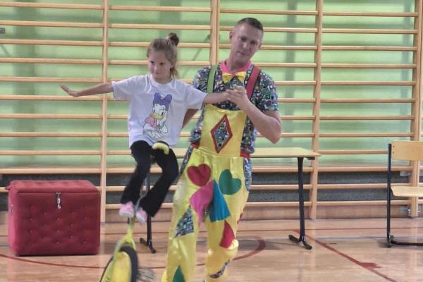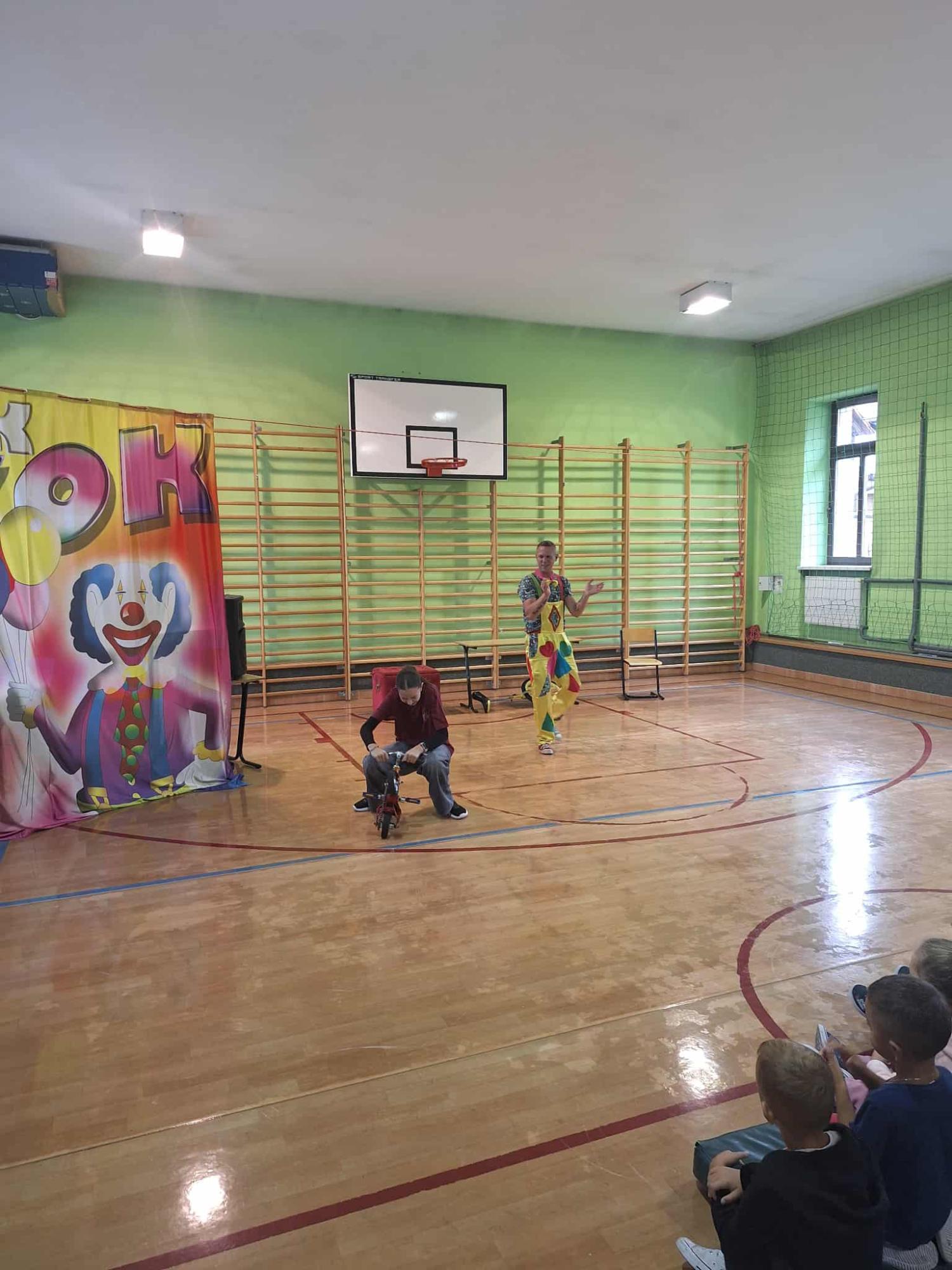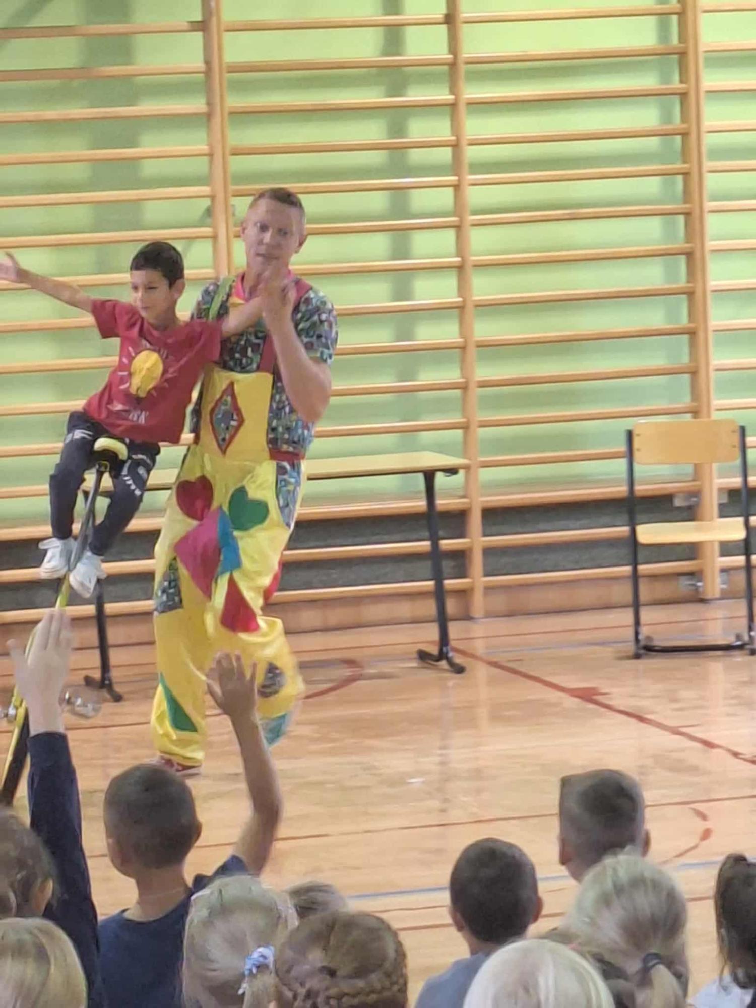 Cyrk Szok. 26.09.2025 Dzisiaj z samego rana zagosił w naszej szkole cyrk. Pojawił się klaun, akrobaci, wąż a także tańczący niedzwiedź. Dobry humor dopisywał wszystkim. Powrót