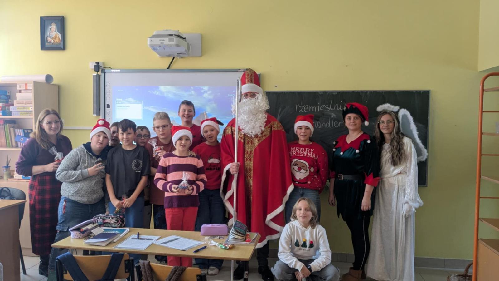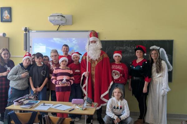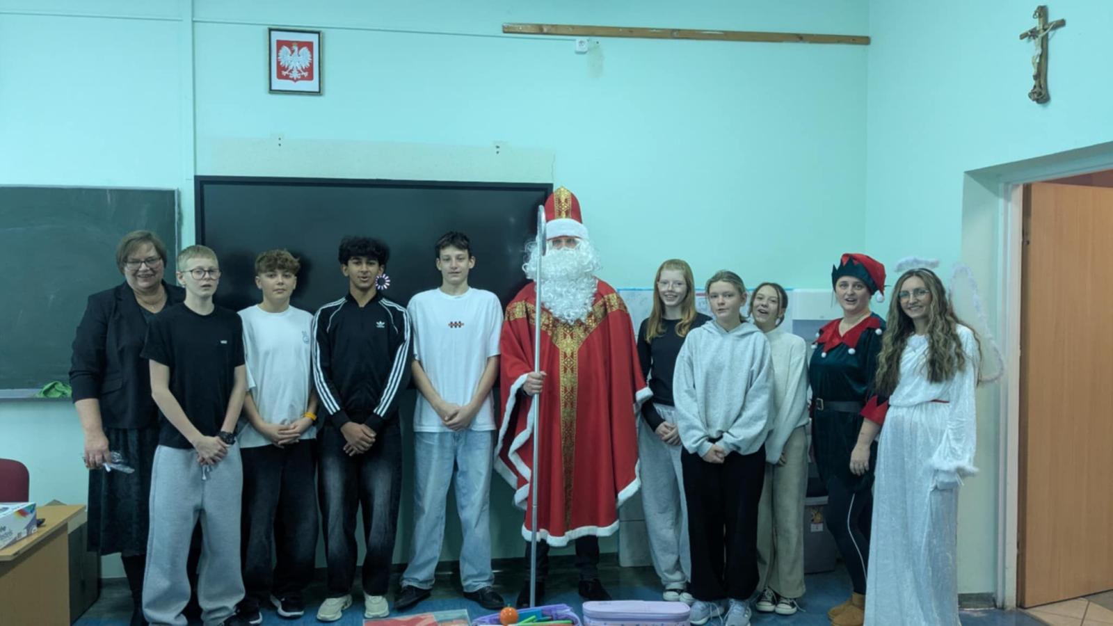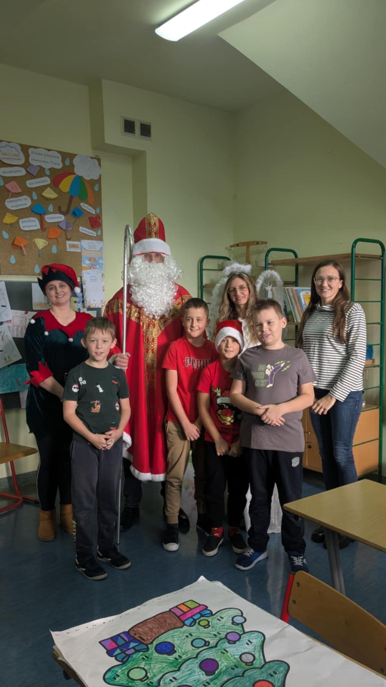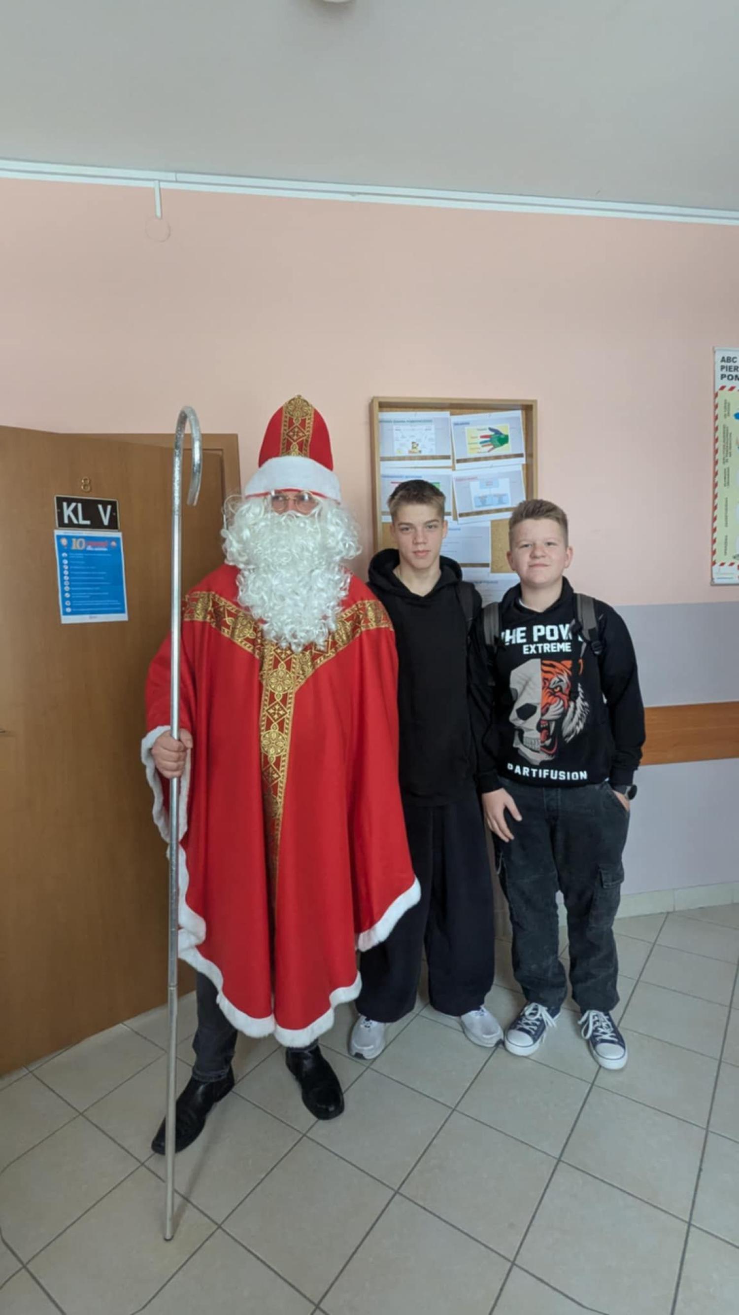 Święty Mikołaj odwiedził naszą szkołę i spotkał się z uczniami klas 0–8. Dzieci przygotowały piosenki i wierszyki, a w zamian otrzymały słodkie upominki i prezenty. Spotkanie pełne radości i świątecznej atmosfery zakończyło się wspólnymi zdjęciami. 🎄Serdeczne podziękowania kierujemy do Rady Rodziców, która pomogła Mikołajowi dostać się do naszej szkoły oraz wiernie towarzyszyła mu podczas rozdawania upominków.