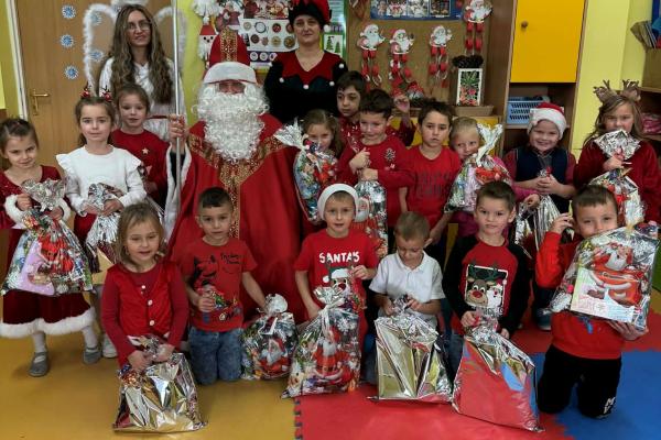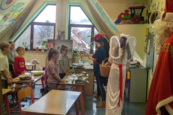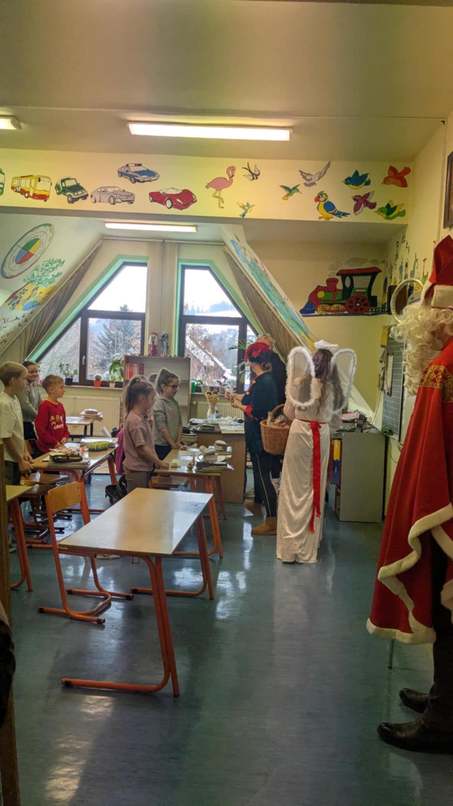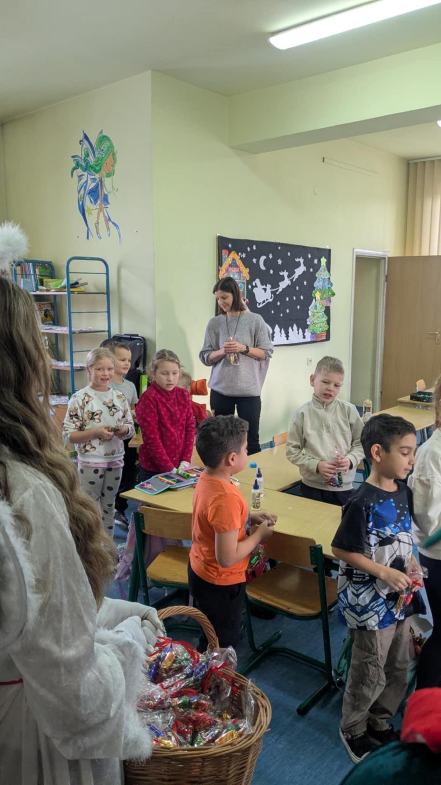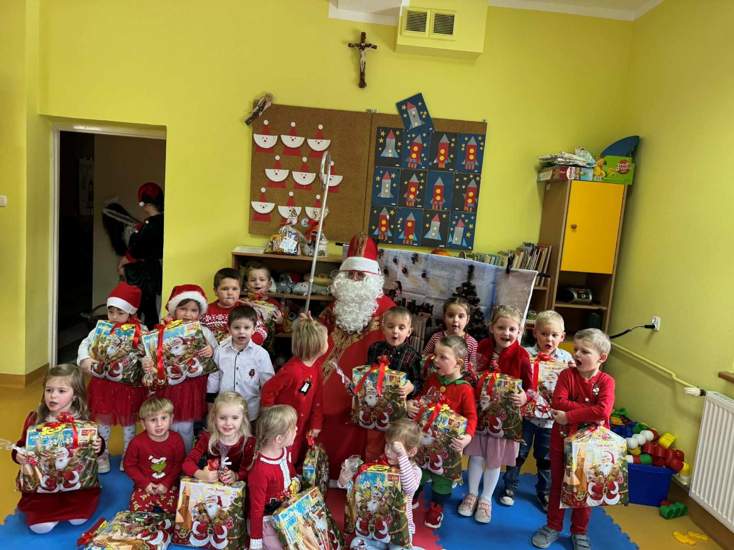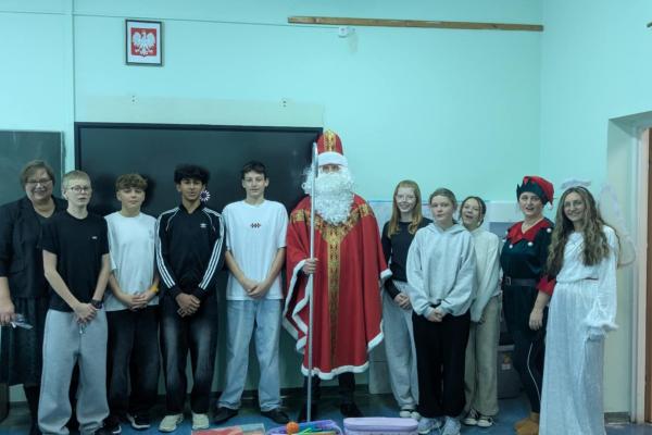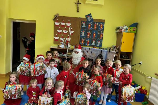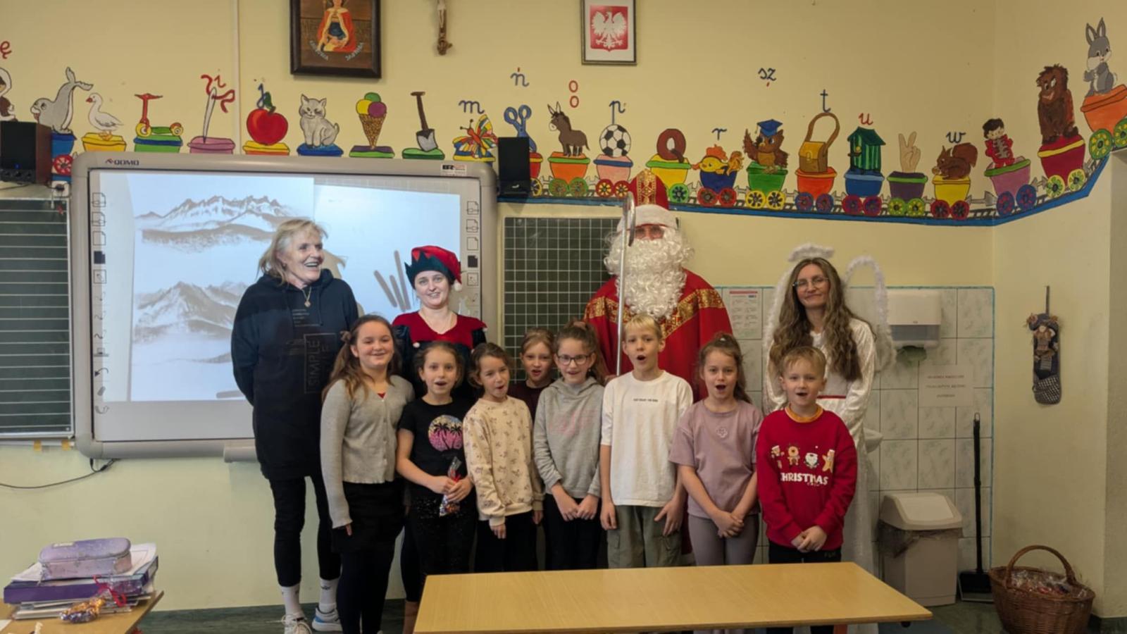 Święty Mikołaj odwiedził naszą szkołę i spotkał się z uczniami klas 0–8. Dzieci przygotowały piosenki i wierszyki, a w zamian otrzymały słodkie upominki i prezenty. Spotkanie pełne radości i świątecznej atmosfery zakończyło się wspólnymi zdjęciami. 🎄Serdeczne podziękowania kierujemy do Rady Rodziców, która pomogła Mikołajowi dostać się do naszej szkoły oraz wiernie towarzyszyła mu podczas rozdawania upominków.