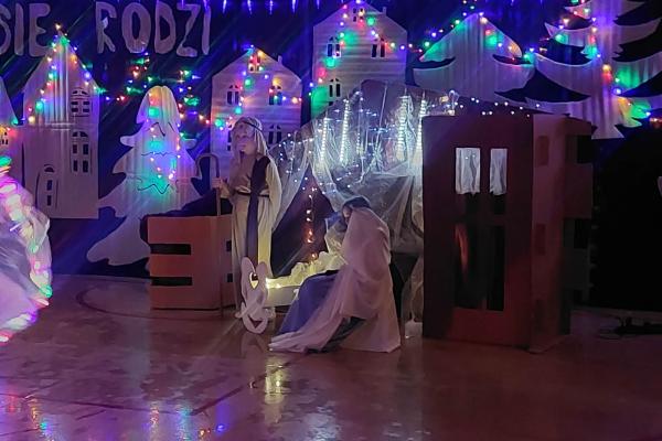 Młodzi artyści z ogromnym zaangażowaniem i sercem wcielili się w swoje role, tworząc magiczną, świąteczną atmosferę. Po części teatralnej publiczność miała okazję wysłuchać koncertu kolęd, który dopełnił to wyjątkowe wydarzenie i wprowadził wszystkich w radosny, bożonarodzeniowy nastrój.