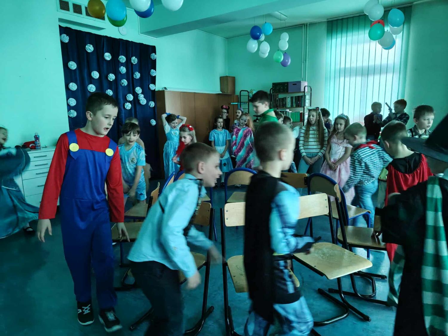 Podczas zabawy nie zabrakło wspólnych tańców, konkursów oraz integracyjnych animacji dostosowanych do wieku uczestników. Młodsze i starsze klasy bawiły się znakomicie, a uśmiechy na twarzach uczniów były najlepszym dowodem na to, jak bardzo potrzebne są takie chwile wspólnej radości.