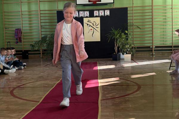 9 marca odbyły się radosne obchody Dnia Kobiet. Z tej okazji przygotowano wyjątkową atrakcję dla najmłodszych uczennic – pokaz mody. W wydarzeniu wzięły udział dziewczynki z oddziału przedszkolnego oraz z klas I–III. Uczestniczki miały okazję zaprezentować się na czerwonym dywanie, przechodząc niczym prawdziwe modelki przed zgromadzoną publicznością, z dumą prezentując swoje piękne stroje, a na ich twarzach nie brakowało uśmiechu i radości. Pokaz odbywał się w rytmie znanej piosenki „Być kobietą”, co dodatkowo podkreśliło wyjątkowy charakter tego dnia. Po zakończeniu prezentacji chłopcy złożyli koleżankom serdeczne życzenia z okazji Dnia Kobiet oraz wręczyli im kwiaty. Dzięki tej miłej inicjatywie dziewczynki mogły choć na chwilę poczuć się jak prawdziwe modelki. Był to dzień pełen uśmiechu, życzliwości i dobrej zabawy, który na długo pozostanie w pamięci wszystkich uczestników.