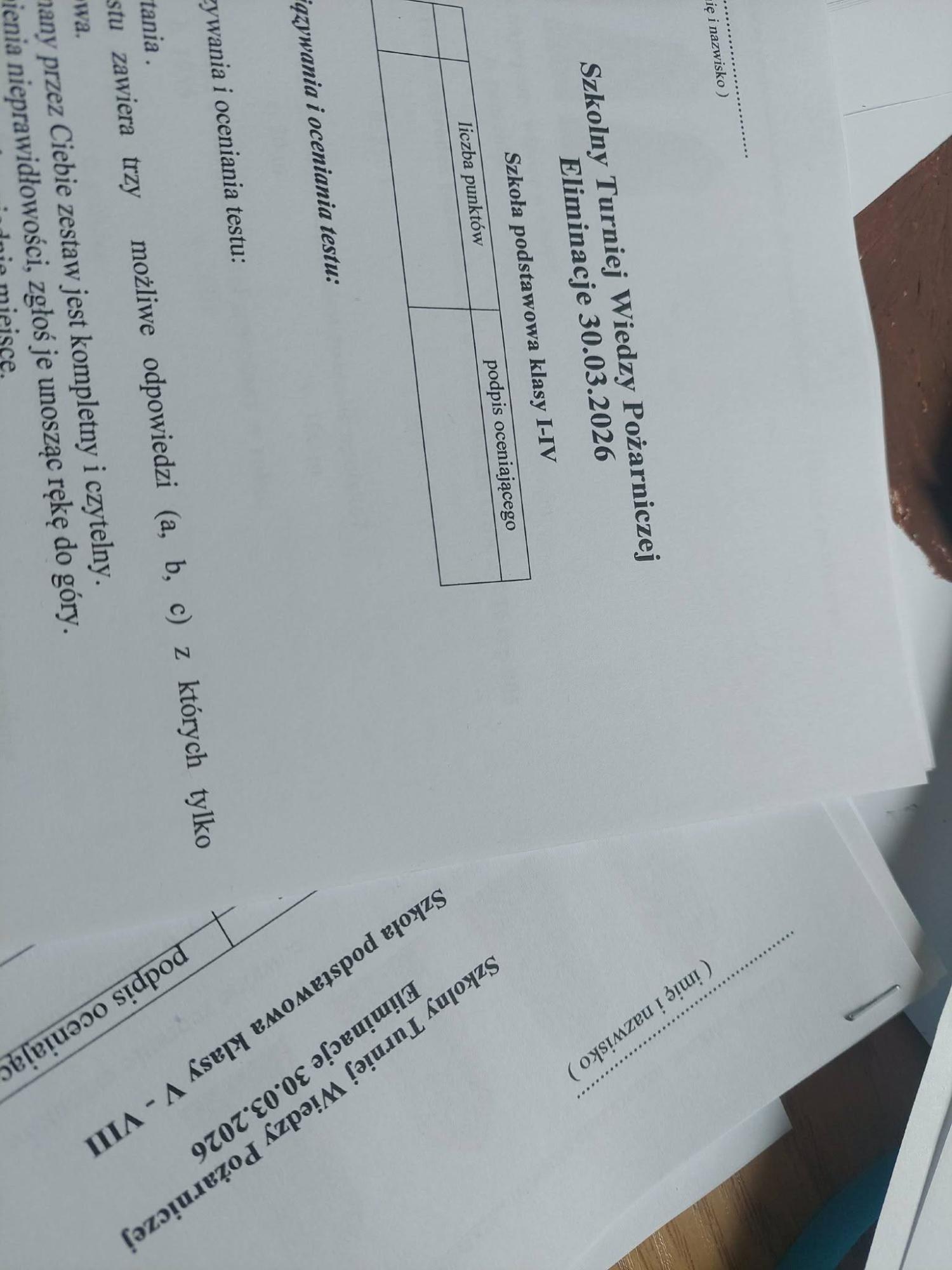 30.03.2026 w naszej szkole odbyły się eliminacje do turnieju strażackiego "Młodzież Zapobiega Pożarom". Do etapu powiatowego zakwalifikowało się 6 uczniów. Z klas 1-4: Małgorzata Wacław kl. 2, Roman Franko kl. 4, Karolina Sołtys kl. 4. Z klas 5-8: Wojciech Wojtanek kl. 6, Hanna Budz, kl. 6, Bartłomiej Koszut kl.8. Gratulujemy zwycięzcom i życzymy powodzenia w dalszych etapach konkursu. Dziękujemy za pomoc w przeprowadzeniu eliminacji szkolnych i słodki upominek Naczelnikowi OSP Czarna Góra - Panu Marcinowi Budz.