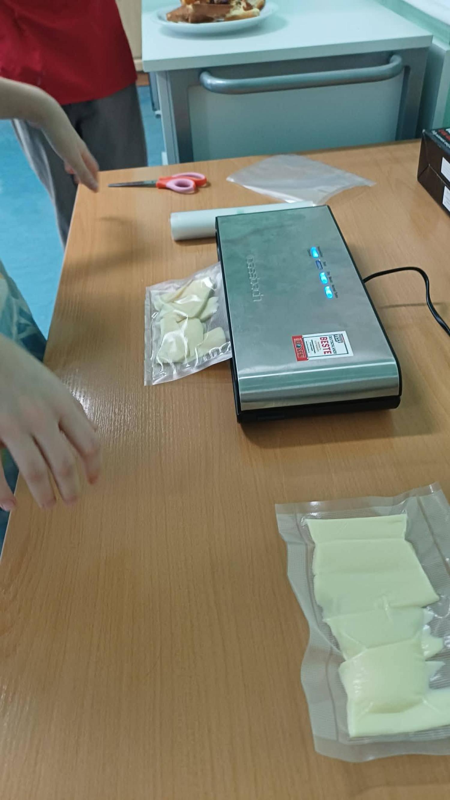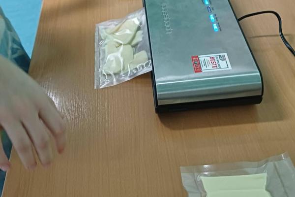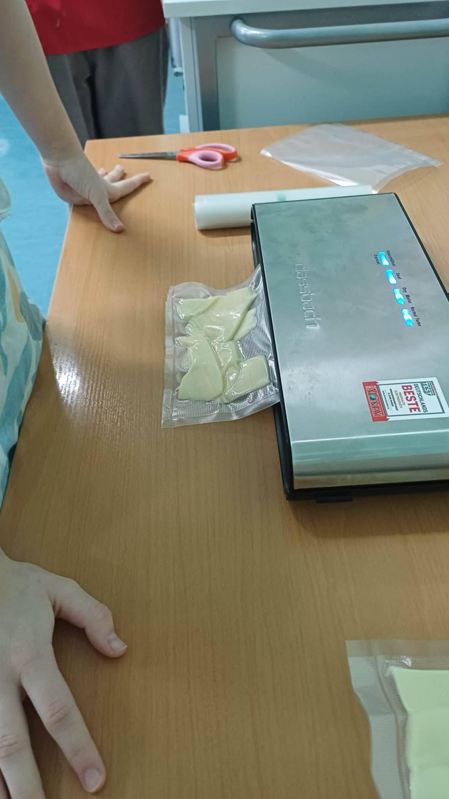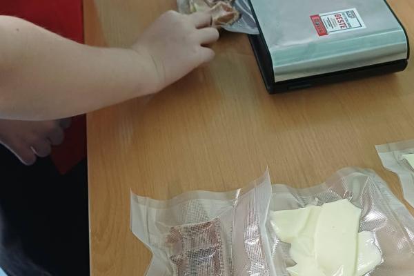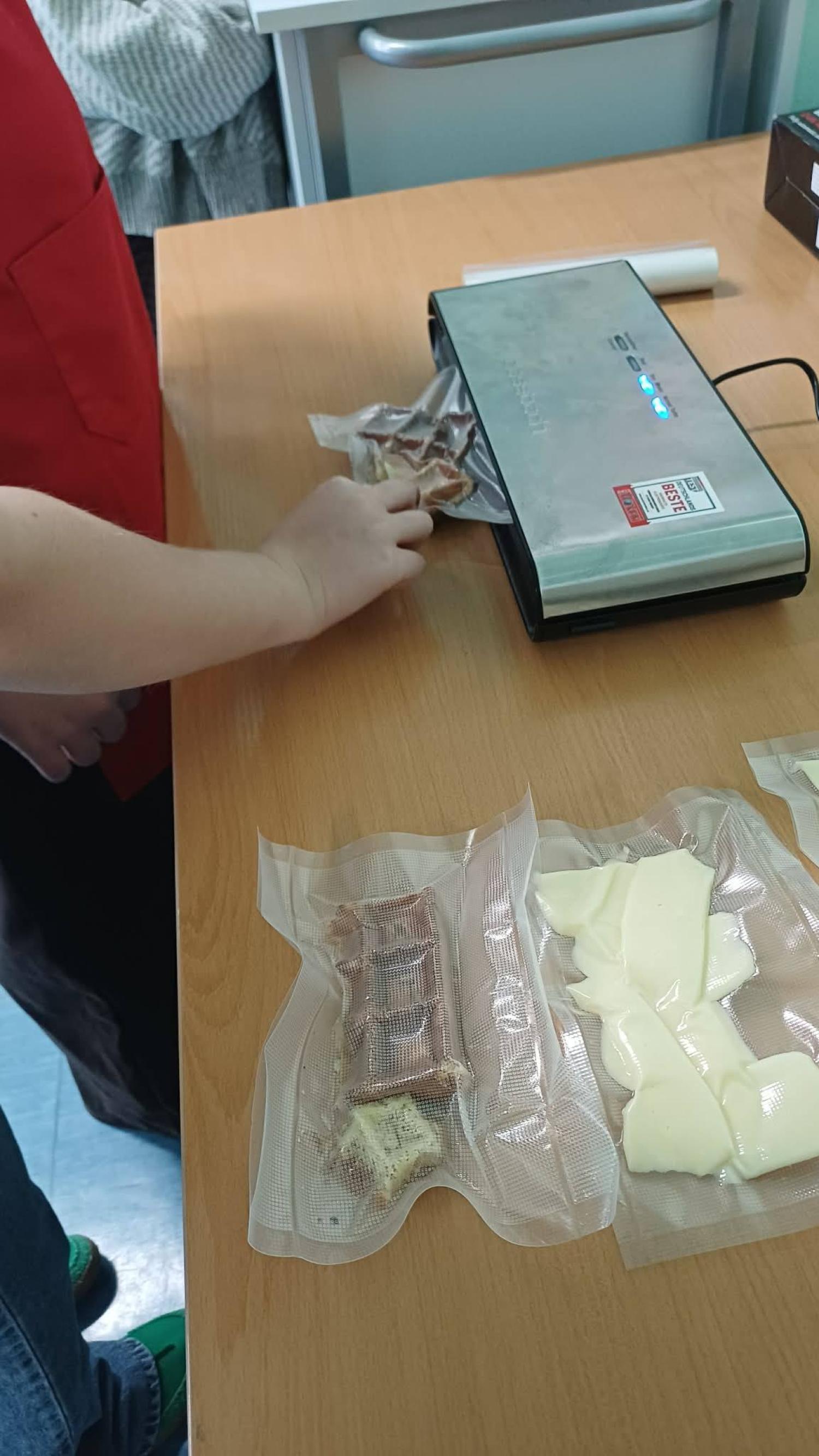 Podczas zajęć uczniowie mieli możliwość samodzielnie pakować próżniowo wybrane produkty spożywcze. Pracowali ze zgrzewarką próżniową, ucząc się zasad jej bezpiecznej obsługi oraz poznając korzyści wynikające z pakowania próżniowego, takie jak ograniczenie dostępu powietrza, zahamowanie rozwoju drobnoustrojów oraz wydłużenie świeżości produktów.