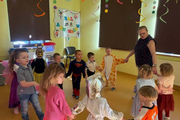 Dzieci z ogromnym entuzjazmem prezentowały swoje stroje, brały udział w zabawach tanecznych, konkursach oraz wspólnych pląsach przy muzyce. Nie zabrakło uśmiechów, śmiechu i wspaniałej atmosfery.